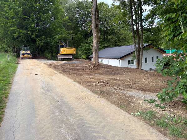 Um genau zu sein hat Dietmar Enste von Tiefbau Enste viel bewegt. Die aufgeschobenen Erdwälle am Rande der Zufahrt sind nun verschwunden und in neuen Dingen aufgegangen: