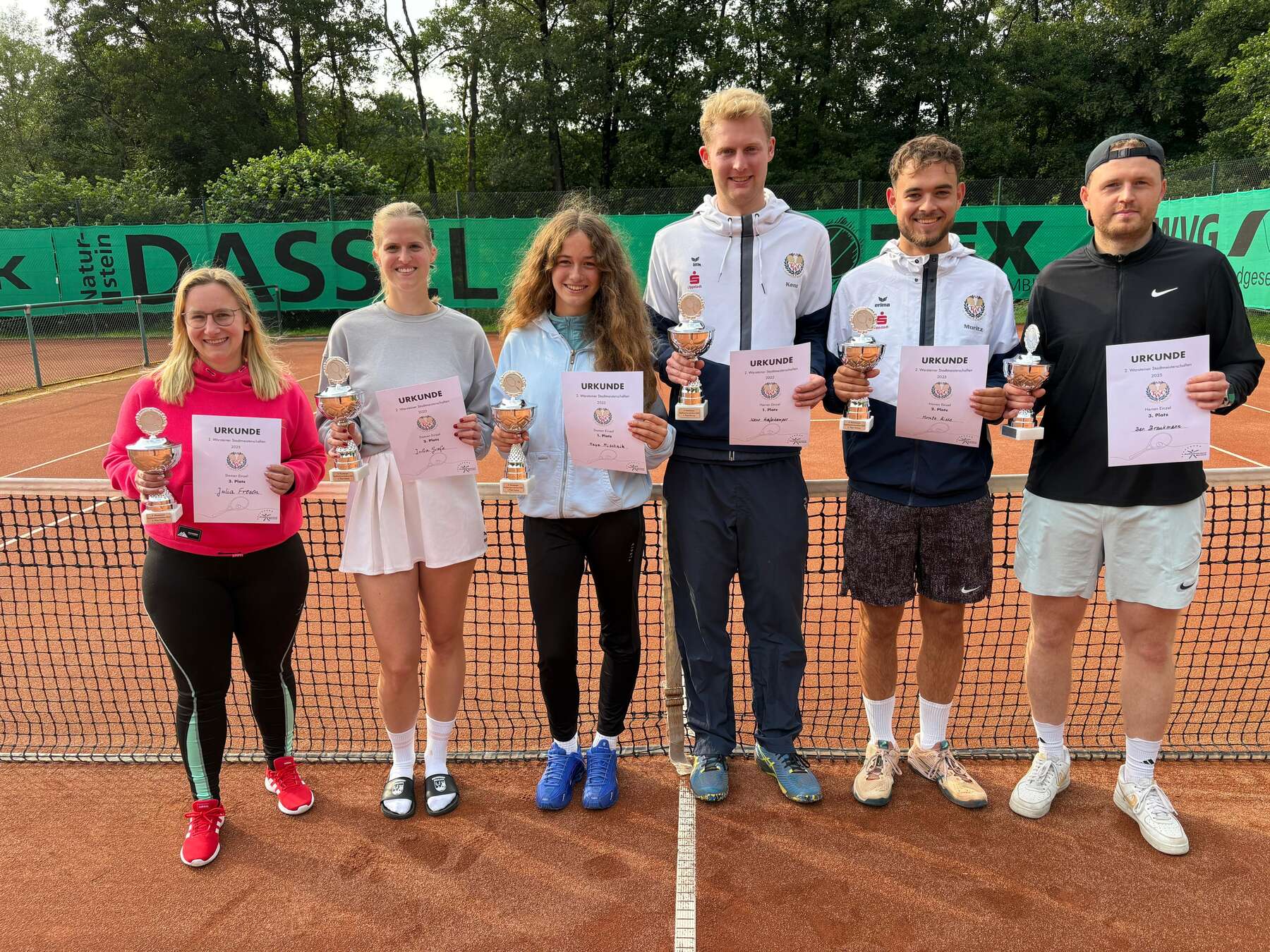 Bei den Herren darf sich Keno Haferkemper (TC Warstein) nach deutlichen Erfolgen neuer Warsteiner Stadtmeister nennen. Moritz Risse (TC Warstein)konnte sich den 2. Platz sichern, während Ben Braukmann (SuS Stemel) das Spiel um Platz 3 für sich entschied.