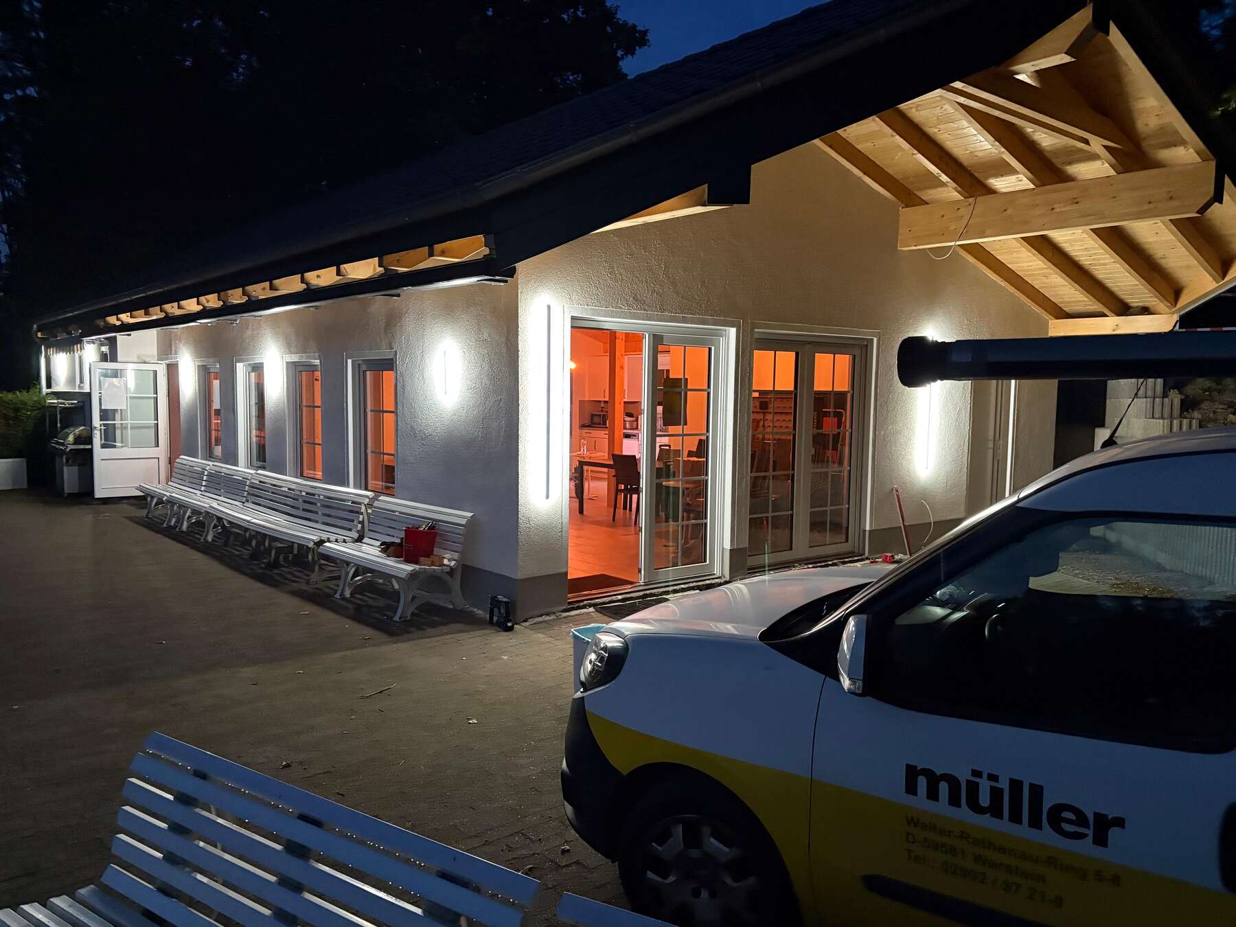 Wolfgang und Justin haben heute bis in den Abend hinein die neue Außenbeleuchtung angebracht👷♂️